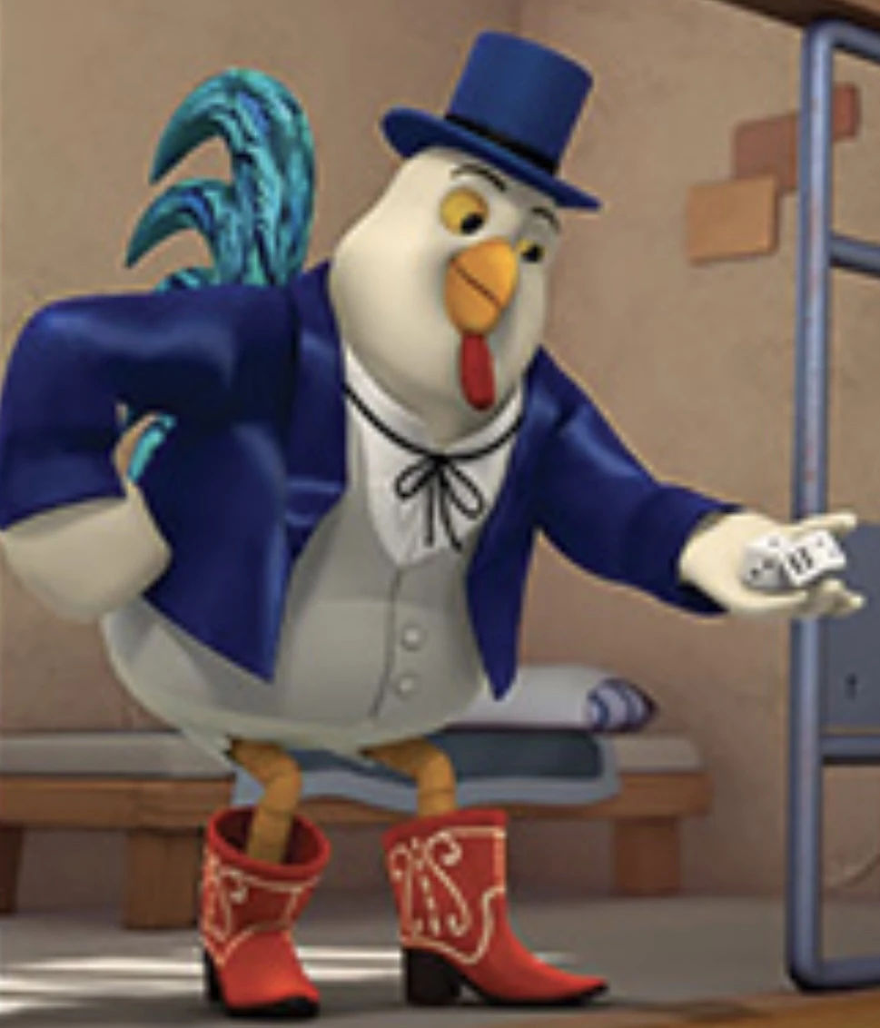 Phineas Foolery is the main antagonist from the Sheriff Callie's Wild West episode "Peck Gets Fooled". He is a tall anthropomorphic rooster who works as a notorious con artist and card shark.