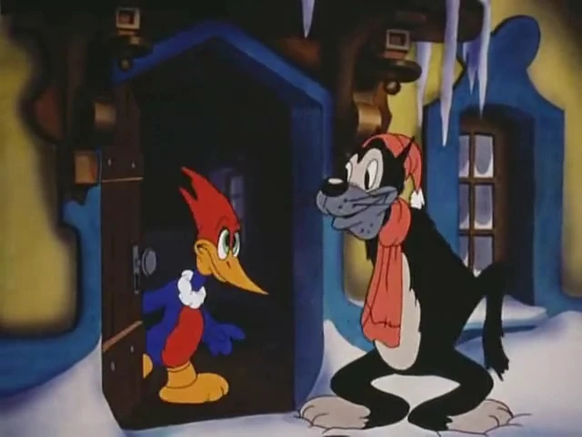 The Cat has been traveling during the winter looking for for food. He arrives at Woody's house, telling the audience he's really hungry, so hungry that he would even eat a woodpecker. He knocks on Woody's door and Woody, who had been starving for a month and hallucinating, attends the door.