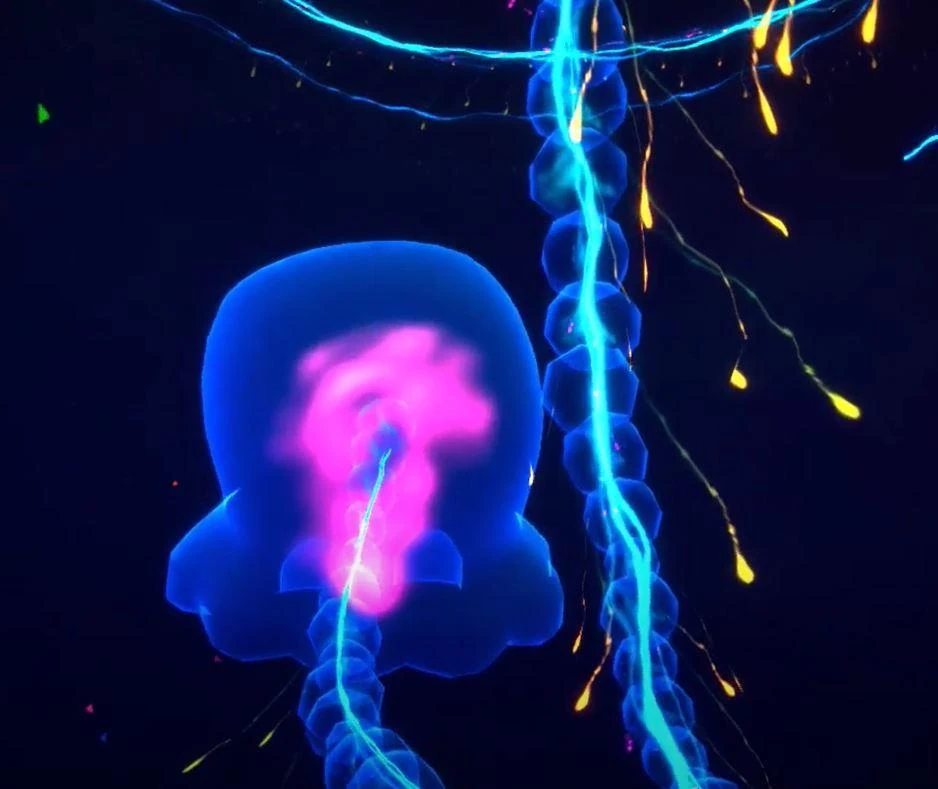 The Praya Dubia is essentialy a giant hive-mind consisting of those that were either affected by the pollution or died as a result. As implied by its name, its source is a Praya Dubia with a luminescent blue body, consisting of a bulbous head and a very long stem-like body with smaller yellow bulbs attatched to it. Said stem-like body appears to be so long that the Praya Dubia has to be constantly moving around in a circular motion just to fit its body in the chambers. As a result of this, a whirlpool, dubbed as the "Spiral", is visible from outside of the palace of King Camtscha and sucks in those that have succumbed to its influence,.