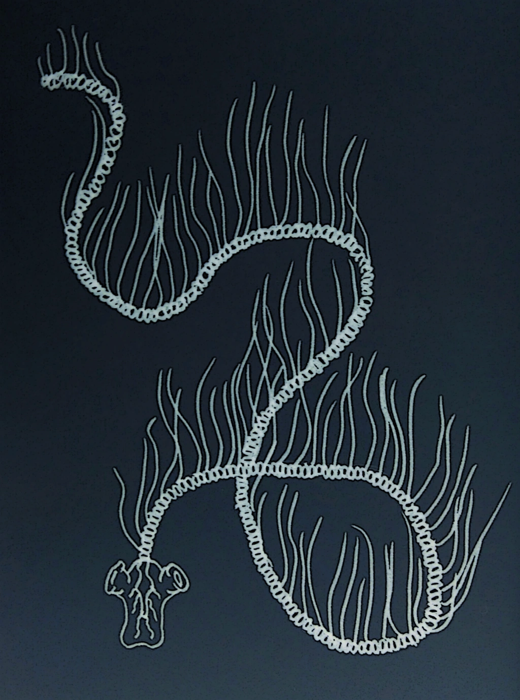 Kril hears the voice on two other occasions, the first of which being after he awakens and comes across a sort of winding light with a purple head, which is seem in multitudes across the depths. Here it explains that Kril had seen the fracturing of the ocean, and how little he understands the upcoming apocalypses. Kril comes across a similar phenomenon when he reaches the old Carcinia, where it explains how each and every "sinner" eventually reaches the center of the spiral, the "bottom of the Drain".