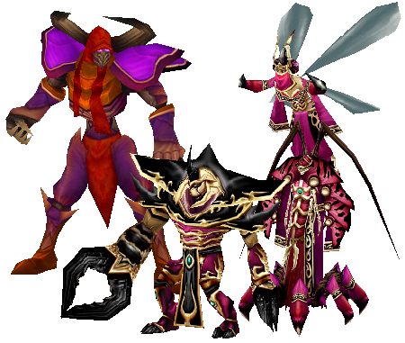 The Qiraji are a fusion of insectoid biology and psychic, void-touched corruption. They are covered in chitinous exoskeletons, possess sharp mandibles, multiple limbs, and glowing eyes that shimmer with malevolent intelligence. Many Qiraji display limited telepathy, allowing them to communicate within the hivemind or exert control over silithid swarms.
