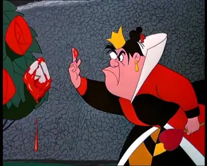 Image and videos of the wrathful and evil Queen of Hearts from Alice in Wonderlands.