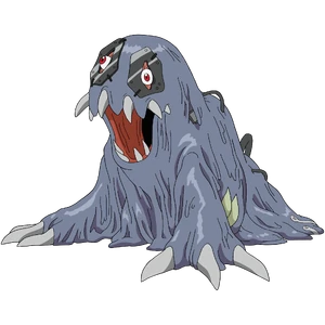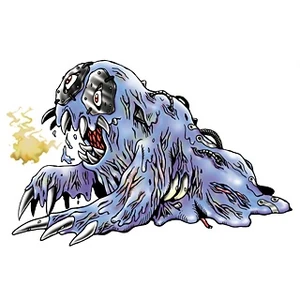 In it’s Ultimate form, RareRaremon, it is a larger heap of rotting flesh with an armored face. On its face are multiple red eyes and its mouth is on top of its head resembling like a Venus flytrap. It has multiple mouths with rotten teeth. It has the ability to digest anything that goes in its body.