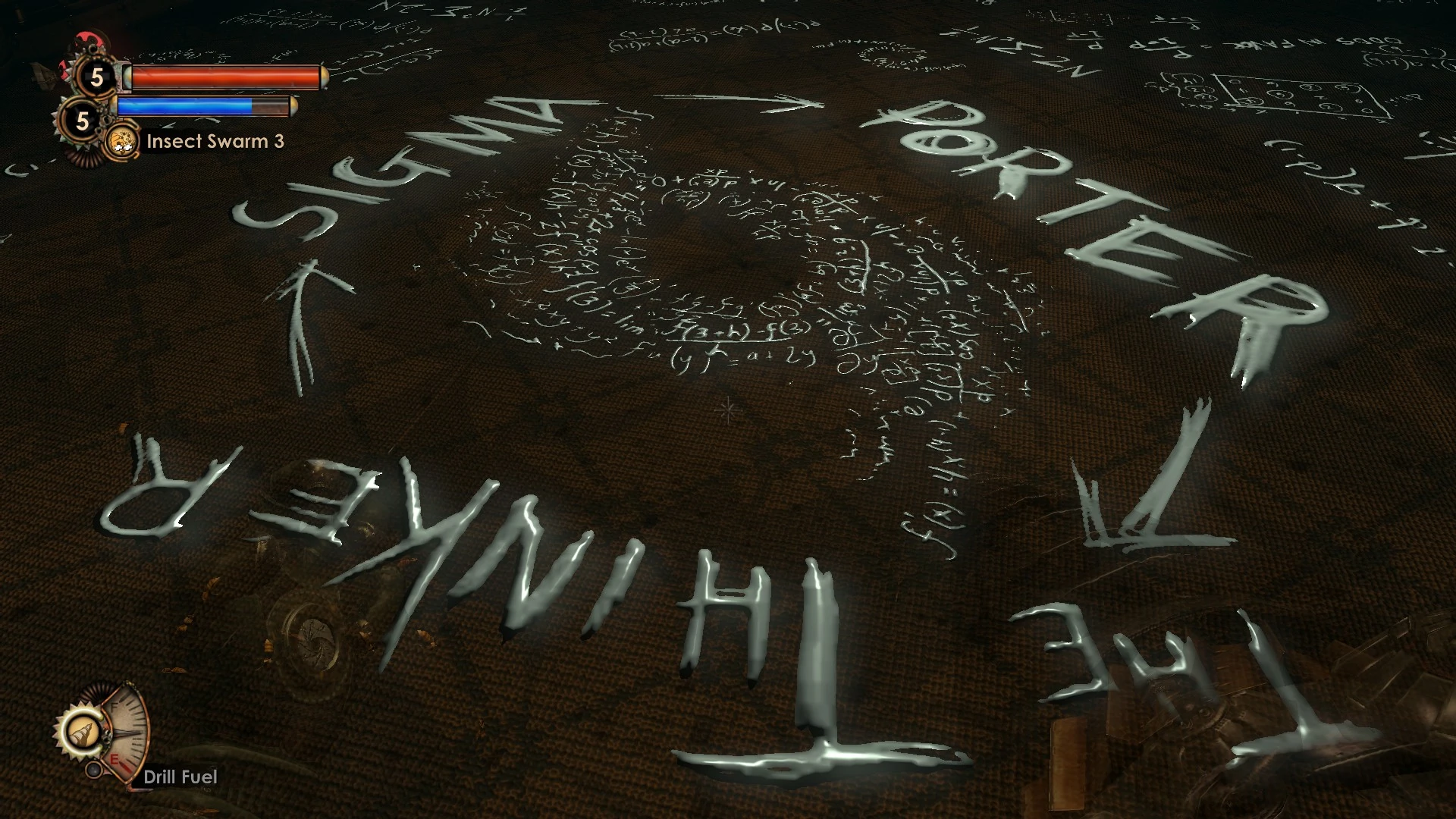 Wahl correctly assumes that Subject Sigma is working for Porter and tries to do everything in his power to stop him from reaching the Thinker, sending swarms of splicers to kill Sigma and taunts Sigma throughout his journey, noting that the Thinker can predict every single action Sigma makes. As Sigma continues to power himself up with plasmids throughout Minerva's Den, he finds many of Wahl's maniacal equations throughout the building.