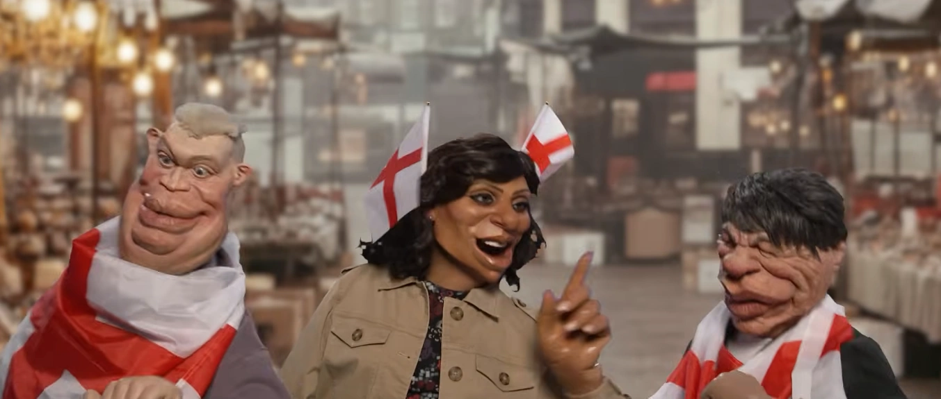 The party is first portrayed in the "Unite the Kingdom" section, where Elon Musk attempts to incite a riot among the protesters. "London Fascist Week" segment, advertising Nazi memorabilia and urinating on a police officers grave. Farage is later seen attacking Starmer during his album presentation, and then again in a vesion of "The Weakest Link" hosted by Piers Morgan. Here, he repeatedly outmanouvers Kemi Badenoch, declares his fascist intentions as Badenoch is voted "The Weakest Political Link". He then reappears complaining about the colour of beer (considering it "not white enough") before Prince Harry pitches the drug "Cream of Farage" - which incites Reform-esque sentiment in both Badenoch and Keir Starmer.