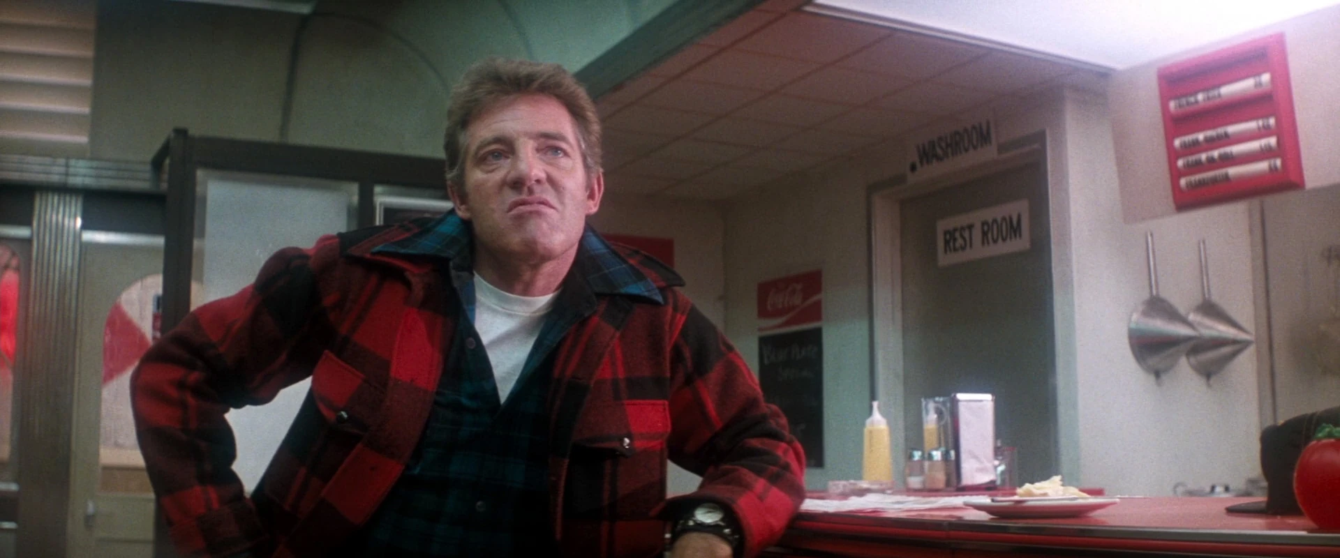 Later on after Clark Kent got his powers back as Superman, Rocky was eating at the diner, rudely complaining about the low-quality of the food, says to Ron the diner owner "Hey Ron, give me another plate of this garbage". Annie, the waitress responds "Garbage, that's my number one special, Rocky". Rocky tells her rudely to get him some more coffee, too. Clark comes in and hears what he says. Clark says to Rocky "Gee that's funny, I never seen garbage eat garbage before". Clark tells him that he is sitting in my seat. Rocky says to him "Come and get it, four eyes". Ron tells Rocky to take it easy, he just got this joint fixed it cost him a fortune. Rocky shoves Ron away. Rocky stood up to slug Clark in the stomach, he hurt his hand, not knowing that Clark had his powers as Superman restored. Clark gave Rocky a high-speed spin on the stool, sets him on his food and then sent him flying across the counter into a pinball machine, knocked out cold. Clark paid the diner owner for the damages.