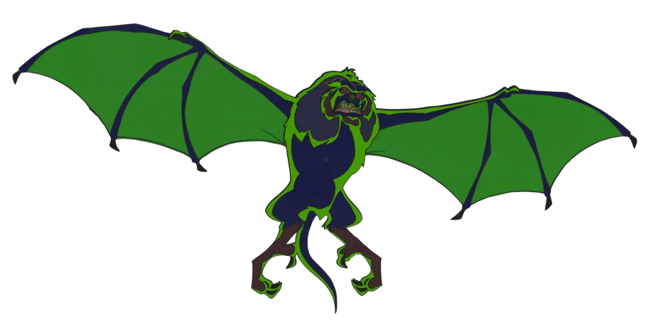 Rothbart's monster form known as the Great Animal takes the appearance of a monstrous, large, chimeric monster with the head of a wolf, the body of a bat, the talons of an eagle, and the tail of a lizard, giving a vaguely wyvern-like appearance. In this form, he can fly at high speed, razor-sharp talons and sharp teeth.