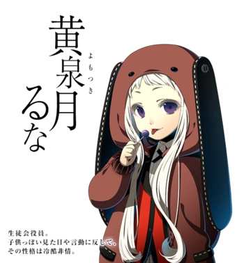 Runa Yomozuki (黄泉月 るな Yomozuki Runa) is the secondary antagonist in the manga and anime series, Kakegurui. She is the leader of the Election Committee of the student council who serves as a referee during election gambling matches.
