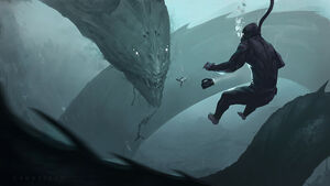 During an alternate timeline where the being known as UBU attacked the Earth and tortured every living thing, UBU threw SCP-3000 out of the ocean and dragged it all around Asia and North America before tying it around the neck of SCP-169, the leviathan.