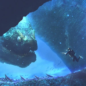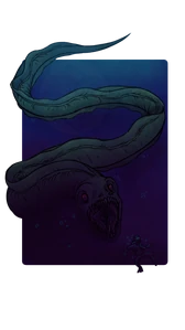 SCP-3000 is a massive, aquatic, serpentine entity that strongly resembles a giant moray eel (Gymnothorax javanicus). The full size of SCP-3000 is impossible to determine, but is estimated to be roughly between 600 and 900 kilometers in length. Its head measures roughly 2.5 meters in diameter and sections of the body proper are as large as 10 meters in diameter.