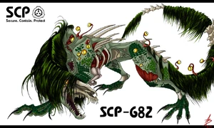 Images and videos of the adaptive lizard of death, SCP-682 from the SCP mythos.