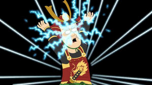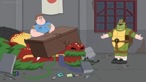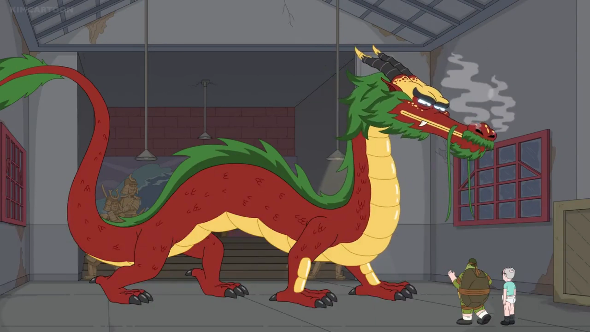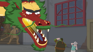 Today, the samurai leader has decided to take revenge on Hopson by killing him. Hopson told him that the only reason he left him was due to his "egg roll" not quite "filling him up". This comment really ticked the samurai leader off, as egg rolls were Chinese and he was Japanese and he didn't appreciate the confusion. The samurai leader transformed into a giant dragon and breathed a geyser of fire at them, ready to kill them. Hopson revealed that he had magic powers as well and transformed into a tiny little bonsai tree, which was completely ineffective, forcing Randall to fight off the dragon by himself and got into an action-packed battle with him.