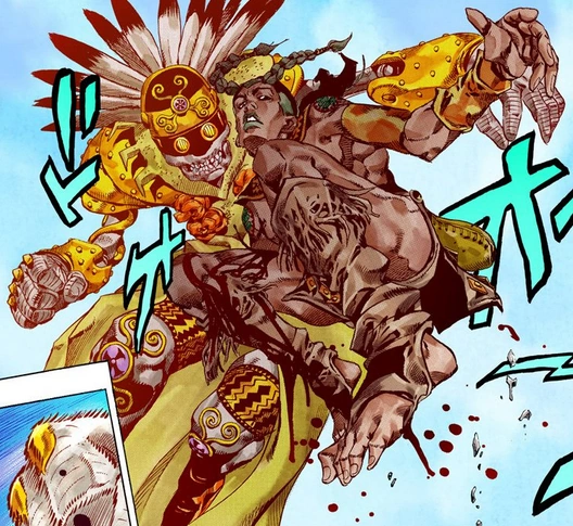 In the 5th stage Sandman turns a racer into a human land mind with 'In a Silent Way' and sends him after Johnny and Gyro, eventually his stand ability mortally injures Gyro and Sandman uses the opportunity to attack another racer before revealing his motives to Johnny Joestar and revealing his birth name as "Soundman" as they continue to fight Johnny gains the upper hand and mortally wounds Sandman, before he succumbs to his injuries he thinks of his older sister one last time.