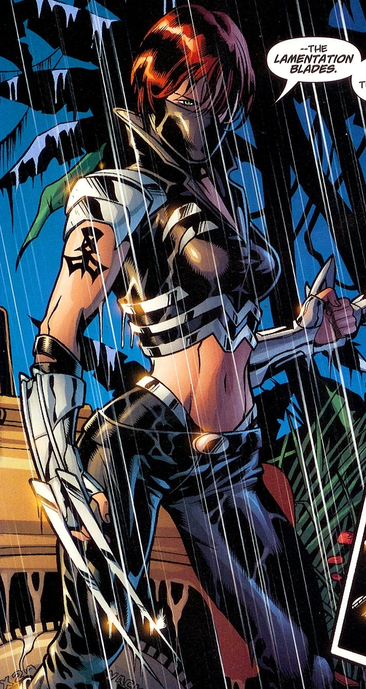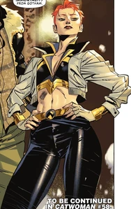 She is the daughter of Vandal Savage, a member of the Secret Six, and a meta-human with the ability to regenerate much faster than normal humans. During the DC All In event, she became the new leader of the Injustice Society. Scandal has also a polyamorous relationship with the New God Knockout and the exotic dancer Liana Kerzner. Eventually, they invited Catman to be their donor so they could have a child together.