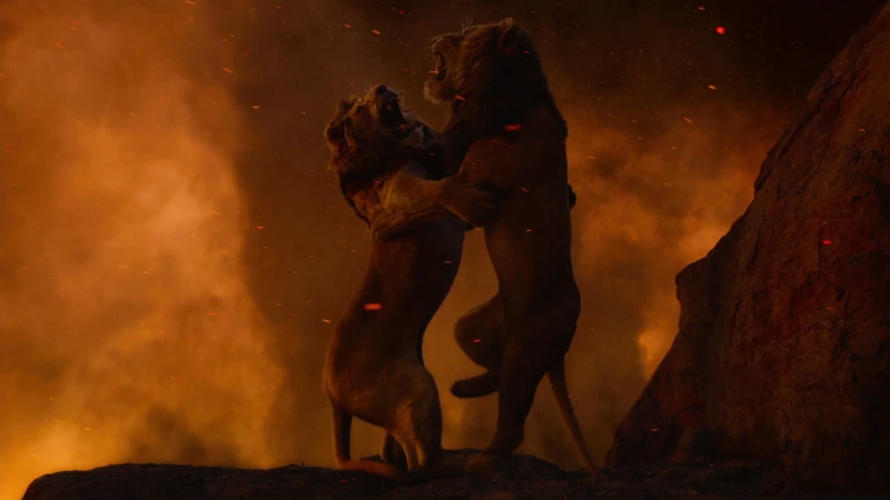 Scar battles Simba for the throne of Pride Rock.