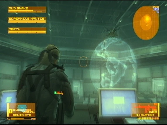 - The fight with Screaming Mantis is a complete reference towards the fight with Psycho Mantis. Much like the fight with Psycho Mantis, there's a health bar for a knocked out Meryl, and if she dies, the result is a game over. Screaming Mantis will also dodge every weapon that Snake uses to fight her, much like Psycho Mantis. And just like Psycho Mantis, Screaming Mantis may cause the TV screen to black out, or appear that the game has restarted.