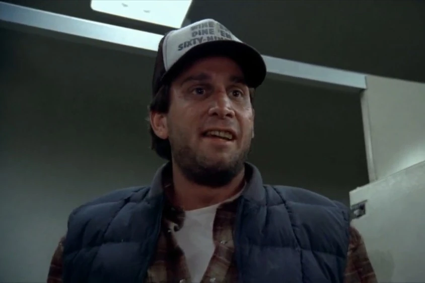 He is first seen in the same diner as Lloyd and Harry, having lunch with his fellow red-neck truckers. After Harry unknowingly accidentally hits him with the salt shaker, Harry tries to apologize for a mistake not knowing he was back there, but rather than accept his apology, he gets revenge (with encouragement by one of his thugs) by spitting in Harry's burger literally thus wasting his food and money.
