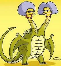 The dragon maintains the same bitterness that Patty and Selma have toward Homer Simpson and his marraige to Marge. They frequently make snide jokes and comments about Homer's appearance and weight (particularly if Homer turns into a Homer Ball).