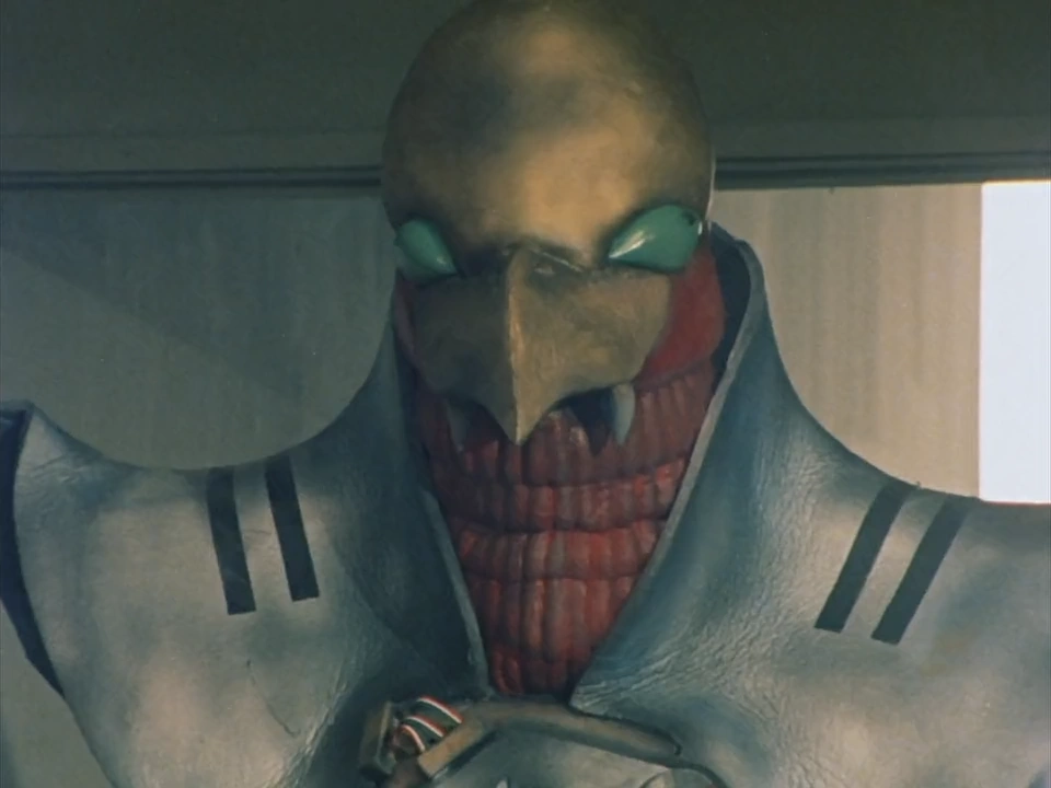 The only way to escape is to defeat the Doubler first, so Retsu transformed into Gavan. After Gavan defeat the Crushers with his Dimension Bomber and Spiral Kick, the Doubler attempt to threw his bladed poles at Gavan before they fought. Don Horror then communicates the Doubler through the sky to encourage him to kill Gavan to bring his head for the anniversary of the Beast Planet Empire's founding. The Doubler then brought back three of BEM Kaiju, the Shako Monster, Oomadako Monster, and Goat Monster, against Gavan, but only for them to be annihilated by Silver Beam. The Doubler and the jet fighters are firing at him, which prompts Gavan to call upon Dol to destroy them. The fight continues, with Gavan finished him off by destroying the Doubler with Gavan Dynamic.