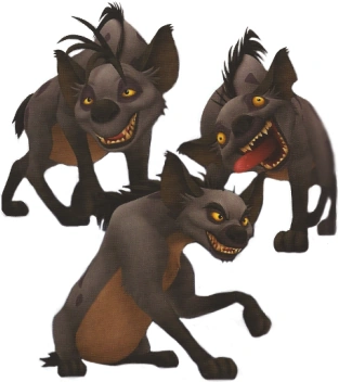 - Originally, they were planned to appear in Kingdom Hearts. However, The Lion King world was scrapped, and for this reason, the three hyenas were cut from the video game, but later appeared in Kingdom Hearts II.