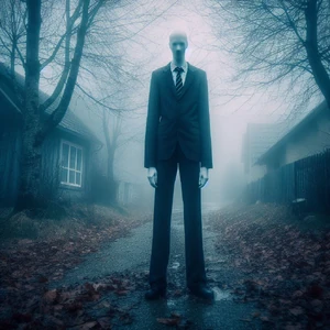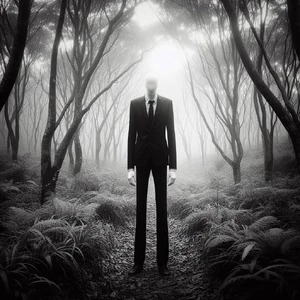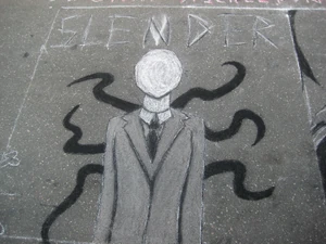 One of image of Slender Man from The original Something Awful post featuring Slender Man.