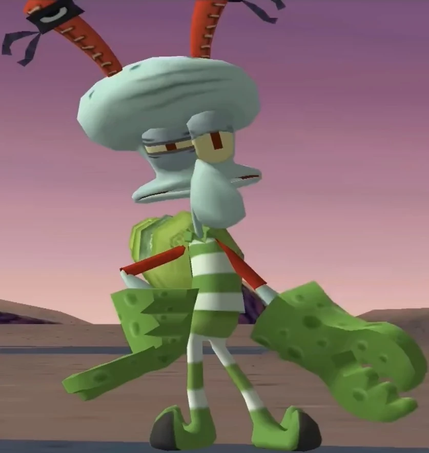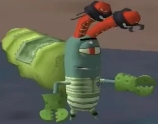 They are the in-universe villain of "The New Adventures of Mermaid Man and Barnacle Boy" anniversary special episode, and the part that SpongeBob SquarePants and his friends are competing to get. They are a mischievous crab (though what species they are can depend on which one of the main characters portrays them) who wants to steal all of the buildings in Bikini Bottom, so that they can put it all on their shell.