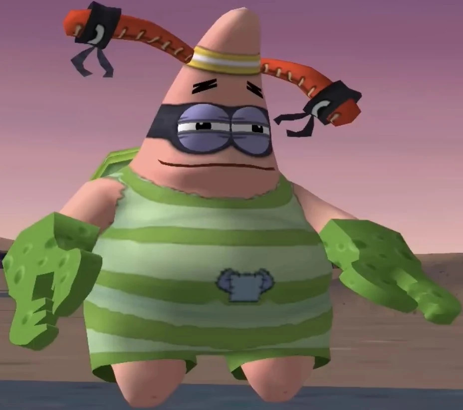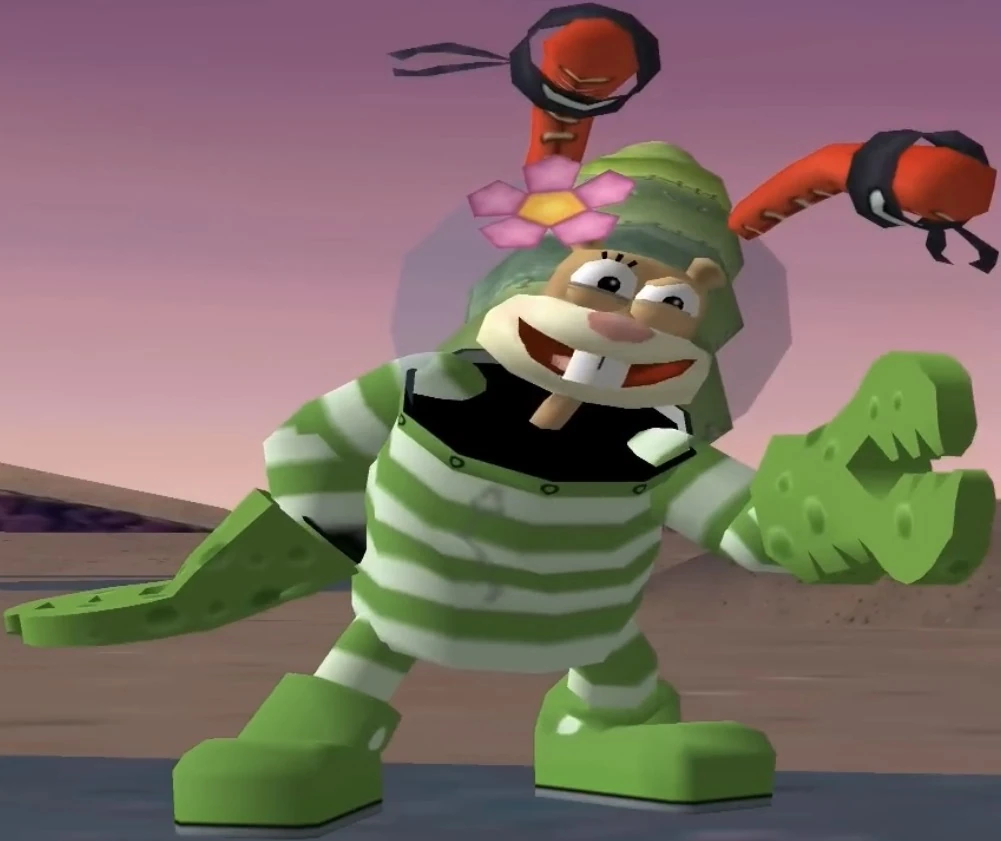 They start at Goo Lagoon because hermits apparently love the beach. A lookout the hermit hired saw them, but they didn’t know it was them and got scared. An ice cream man who next to them claims that he heard of the heroes’ quest, saying the hermit was here earlier and said he was hungry for the Krusty Krab. So, the heroes go there, but the ice cream man tells the lookout that he just got rid of them. Thanking him, they get another call from the Sneaky Hermit saying they won’t get scared again, only to immediately do when they see Man Ray and the Dirty Bubble. The villains decided to join forces with the Sneaky Hermit, the ice cream man showed them a sign to his hideout.
