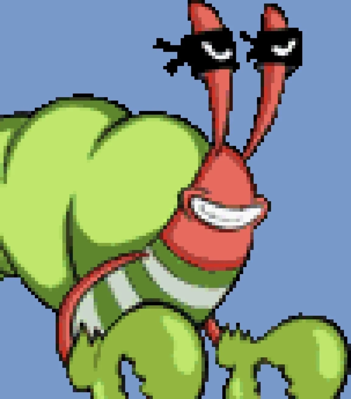 In there, the Sneaky Hermit talks with his pet snail about his plan. They reminisce about their spouse and/or parents and how they took their house away from them. At that moment, Man Ray and the Dirty Bubble arrived with cookies. The Sneaky Hermit agreed to the villains' offer of joining forces, they give them a captive in a sack which they can use to distract the heroes. After the villains leave for the Chum Bucket, the Sneaky Hermit reveals that he’s going to steal their evil lairs while they are gone, telling their pet snail to do something before they leave.