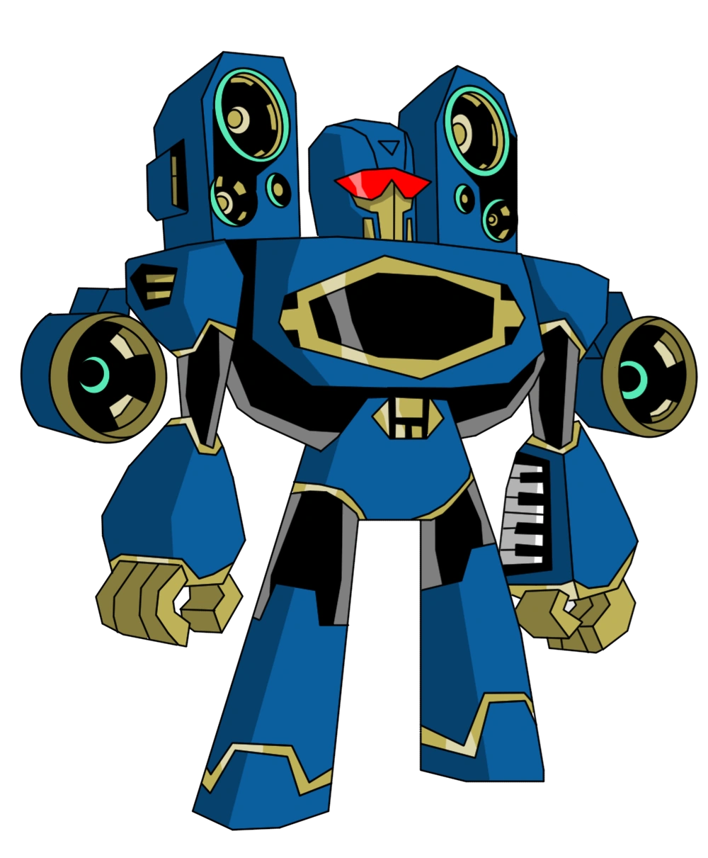 - His Vehicle form is based on a Scion xB with a "Pimp My Ride" music style treatment. His triangular-shades are based on 2000 AD's ABC Warriors.