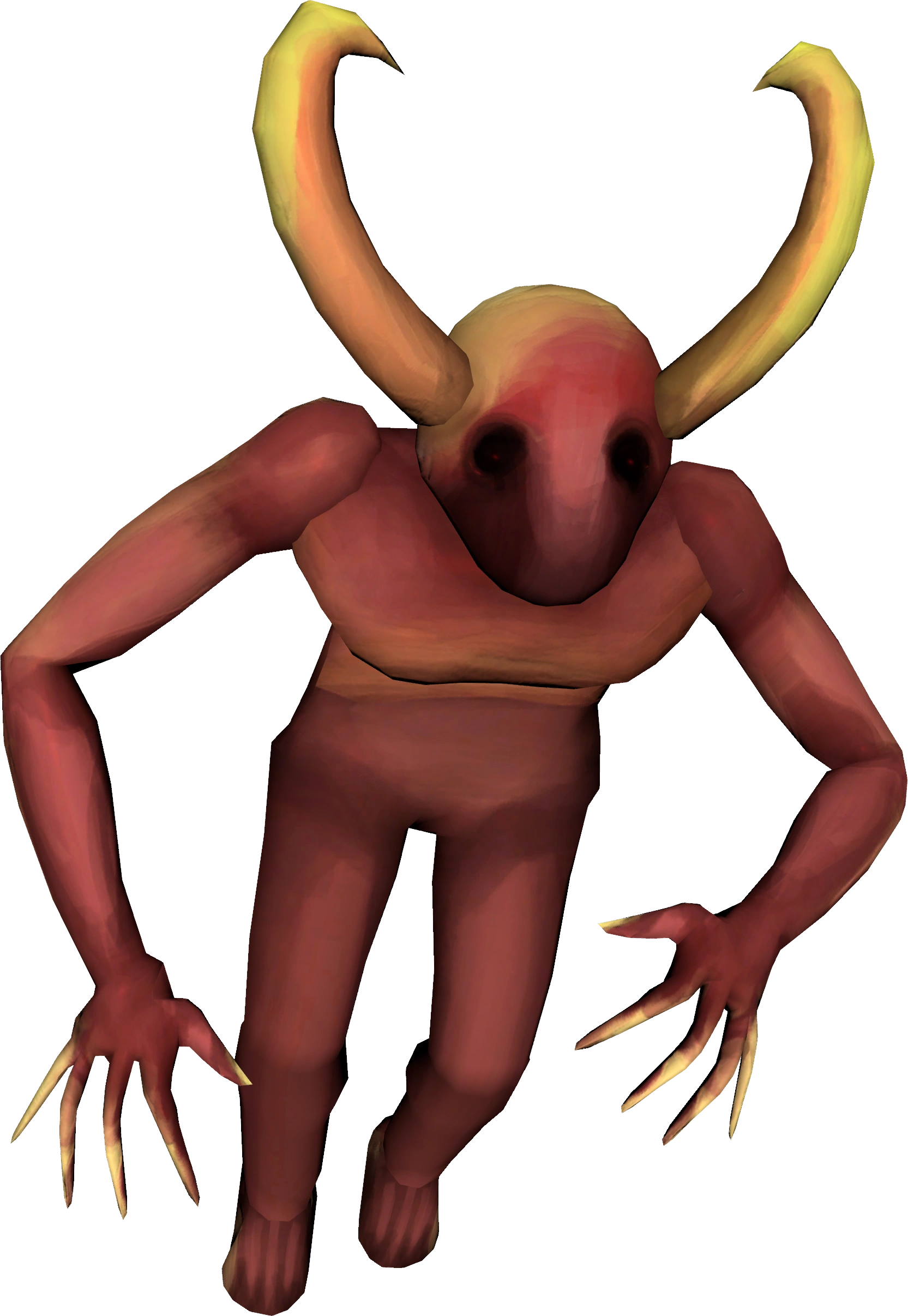 Specimen 11 appears to be a short, floating red demonic creature. Two yellow curved horns appear planted on its head, and in the HD remaster, a flaming symbol can be seen between them. On its hands, Specimen 11 appears to be having very long claws. While its eyes appear to black, it does not have any other facial expressions.