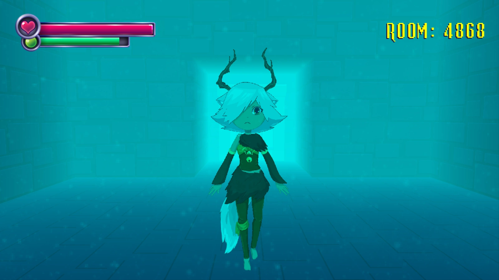 Once the player has left the safety of the kitten, and enters Specimen 7's dimension, a huge wall of flesh and bodies starts chasing the player, meaning they can't make too many mistakes in the maze-like rooms that 7 chases them in. Once the player has escaped the wall, the player gets into a mist-filled forest at room 550, containing small deer. The deer are passive, grazing in the forest, until the player provokes them. As the player moves on, Specimen 8, a Humanoid-Deer God appears, chasing the player.