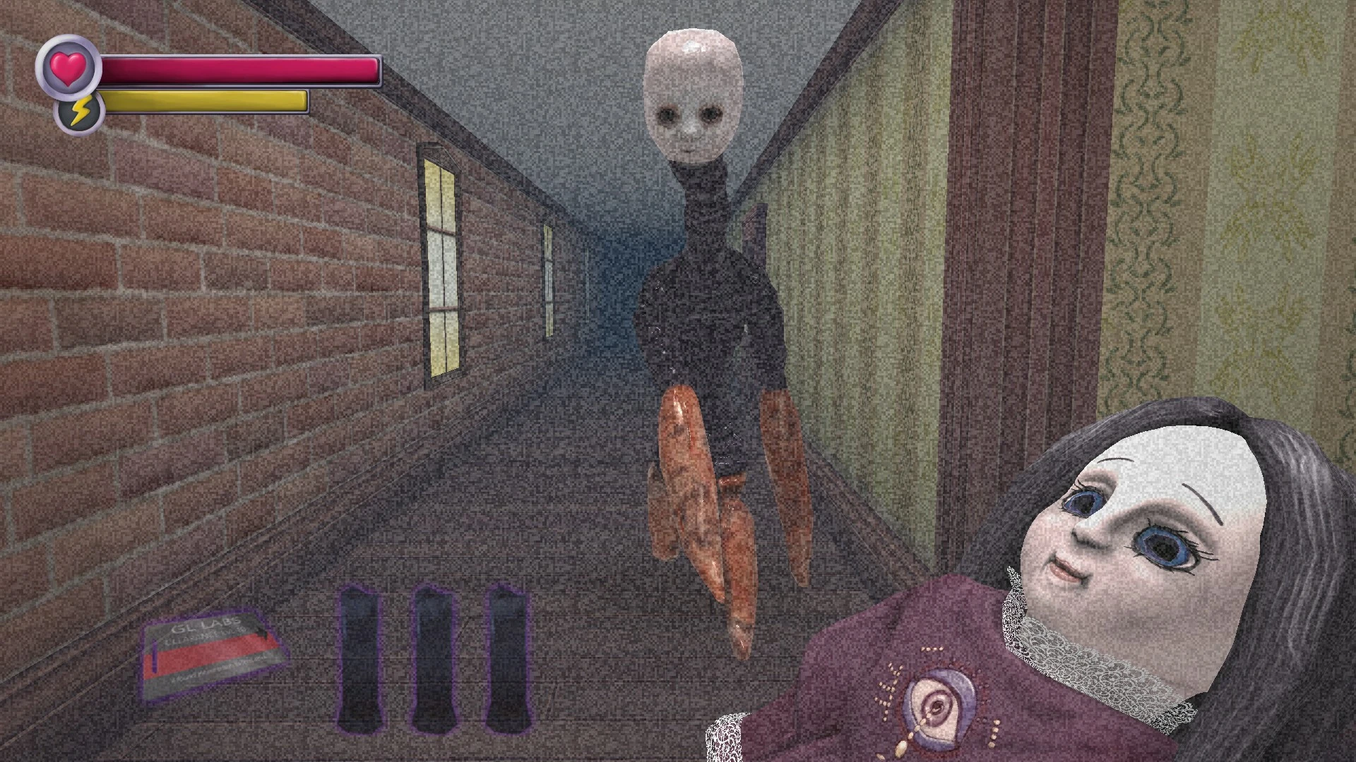 Clicky is a doll encountered in Spooky's Dollhouse with a hole in her head, who makes a clicking sound whenever she follows the player's movement. She can be seen clinging to the roof in the Northside Studies and under the metal flooring in the GL Labs. She never attacks the player. It is implied that Clicky is possessed by the spirit of a girl who was shot by her father.