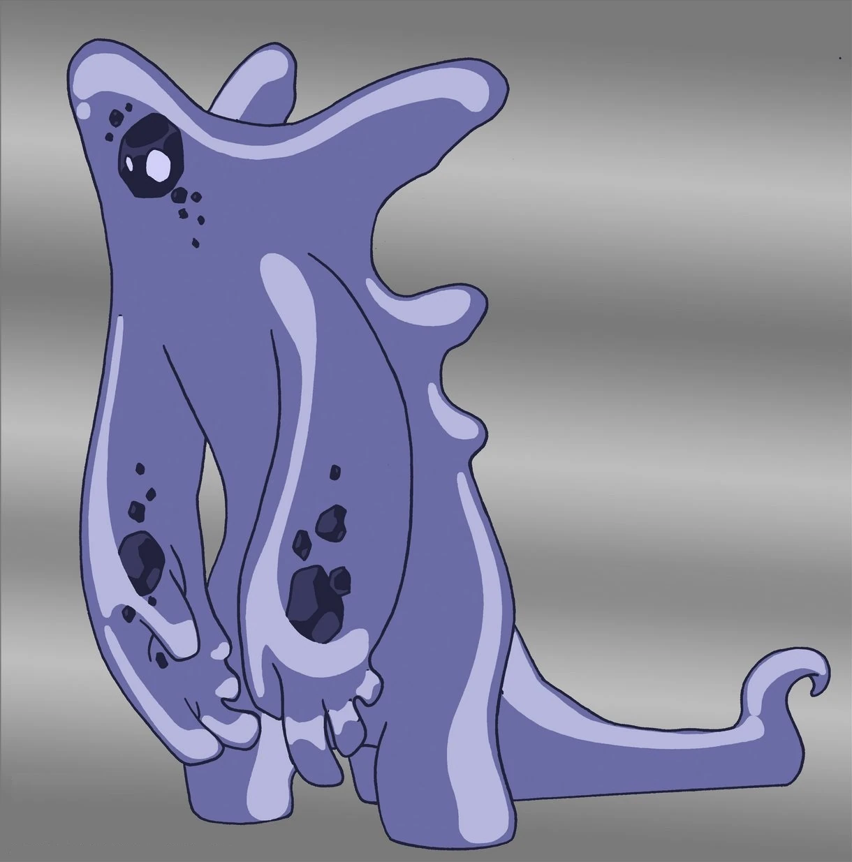 It appears to have some small rocks inside of it, and one larger inside of its head that has a pair of eyes on it. Sploot can stretch its body, or at least its limbs, to almost unlimited lengths. It can also eject slime as a projectile, and has superhuman strength, as evidenced by its ripping up of concrete train tracks with ease.