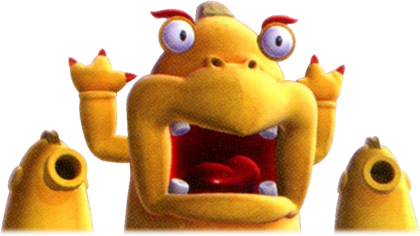 After being enough times a second time, Squizzard will bring out cannons on either side of him that will also fire the spiked balls, including the yellow ones. These cannons can be temporarily disabled by hitting them with a fireball, but they will regenerate after a short time. Squizzard will also stop throwing the spiked balls himself and start throwing two large bombs at Mario/Luigi. Mario/Luigi must throw one last series of four fireballs into his mouth before he is defeated, giving Mario/Luigi a Power Star.