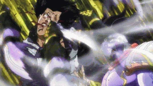 Dan starts to beg again but Jotaro stops him. Jotaro says that if Dan wants mercy he should ask for it from Enya, as Jotaro had never intended on sparing him, he just wanted to see how low the man would sink before he finished him off. Dan makes one last attempt at saving himself by offering to pay Jotaro all the money he got from DIO. Jotaro simply tells him that what Dan has done can't be paid back with money. Jotaro then proceeds to pummel Dan mercilessly for a half a minute straight. Finally, Jotaro tosses a paper at Dan's body, saying "Your receipt. Keep the freakin' change."