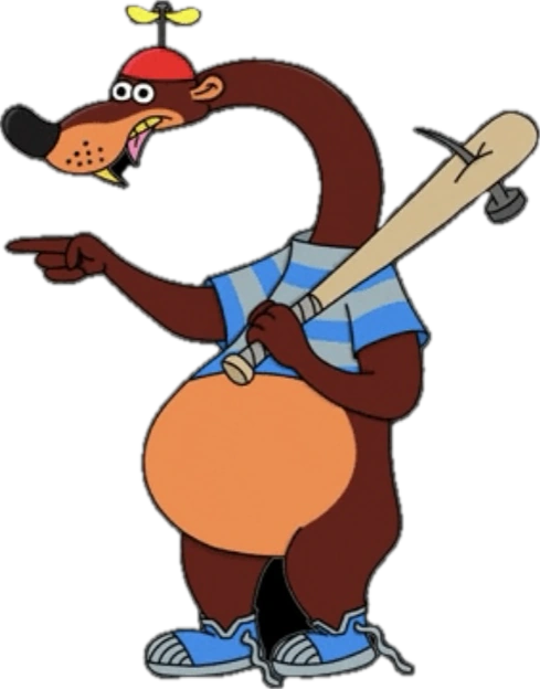 Stupid is overweight, while all of the other Weasels are quite slim. Stupid wears a blue and white striped T-shirt, a red beanie with a propeller and white sneakers with untied laces. His weapon of choice is a baseball bat with a nail through it.