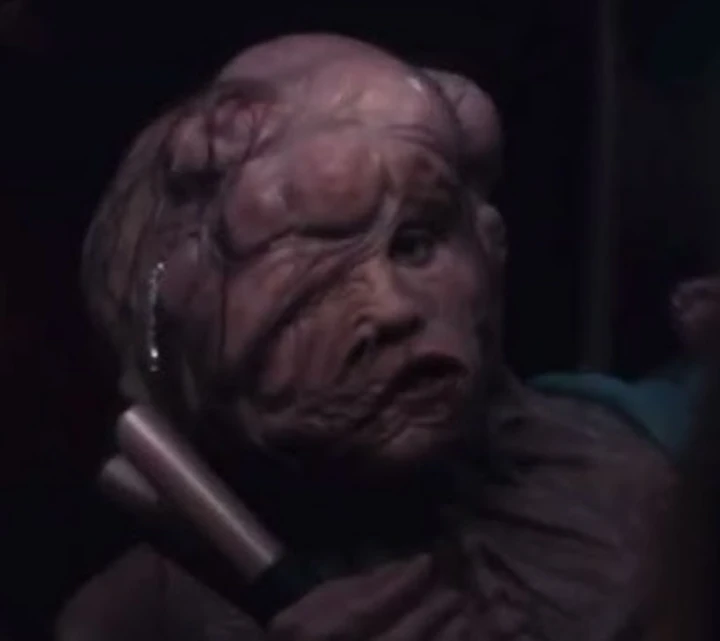 When she attempts to make her speech in front of the audience, her glued face comes off, and her body mutates to grow a breast from her body. the audience erupts into chaos. The audience calls Elisasue a monster and shoves her around while Elisasue tries to calm the audience and say it’s still her (calling herself both Sue and Elisabeth) as she cries. Amidst this madness, an audience member attempts to decapitate her, only for an even more mutated head to grow back, and one of her arms to break and drench both the audience and studio in blood. As Monstro Elisasue flees the studio, it eventually collapses and explodes into viscera. Following Elisasue’s body falling apart into pieces, Elisabeth’s consciousness is still temporarily active, as her face that emerged from her remains moved towards her street star and reflected on her past life, finally able to experience her happiness again before dissolving into nothing but a reddish liquid substance.