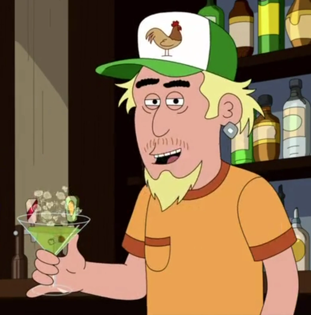 In "My Favorite Bear", Super Rape was at Epstein's Bar with a bunch of other drunken barflies, celebrating the legend that was Flamey the Bear. He sang a musical number and danced in celebration of the famous bear who lives getting drunk and having sex. After a long time of partying the day away, at long last, Steve finally busted in and broke it up. Flamey the Bear introduced Steve to his new drunk-ass hillbilly friends, Shitkicker, Eddie One-Tooth, and the fabled Super Rape. Super Rape gave himself a further introduction, telling Steve in a creepy and dark voice to not be fooled by his name, making it clear that despite his nickname, he was no actual rapist. However, he continued to say that he was just a regular rapist, making the "Super" part of his name a lie, as opposed to the "Rape" part of his name. As he did this, Super Rape spiked a martini with a roofie and then grabbed a nearby woman by the back of the neck and then forcefully dumped the drink down her throat, making her drink it and drop unconscious. Super Rape continued to hold this sleeping woman beside him and partied with her at the bar. Later, Flamey the Bear announced that he'd be serving everyone drinks and putting it on Steve's tab. Super Rape was among one of the many barflies to cheer over this great celebration. However, Flamey the Bear would later leave the bar with Steve, neither of them paying the tab. Later, Super Rape, along with an angry mob of other people would come back for revenge. Super Rape angrily yelled at Steve for sticking him with the bar tab and then later ran up to him to beat him senseless with a golf club.