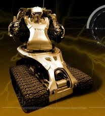 Each side of the T-1 is equipped with a mini gun that fires 3,000 rounds of .50 Caliber ammunition per minute. The guns are directed by the robots' on board radar. The T-1s are deployed in a crouched position but they may rise to eight feet during combat. The T-1s are also capable of fully rotating 360 degrees. Enemies are targeted by a laser via the T-1s' sensors.