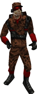 Like the other TFC mercs, He was hired by RED and BLU to fight in the Gravel War. Later, he and most of the other TFC mercs were hired by Gray Mann to hunt down and kill the TF2 Mercs. However while talking with the TFC Soldier who is covered in gasoline, he and the TFC Soldier are killed by Pyro.