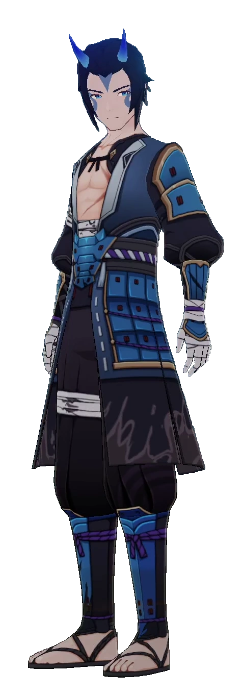 He is a member of the Blue Oni, one of the two Oni Clans in Inazuma alongside the Crimson Oni. Seeing how Humanity would not accept his clan, Takuya turned to a life of crime to support his people. Later joining a Ronin group to steal goods from Inazuman Civilians.