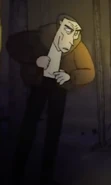 The Teacher is often shown wearing clothes stereotypical of a homeless man, including a brown coat and yellow top and jeans.