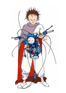 In the beginning of the story, Tetsuo was one of the youngest members of a motorcycle gang led by his lifelong best friend, Shotaro Kaneda, and was constantly frustrated with being seen as little more than an inexperienced "junior" member, weak and introverted. He was enthusiastic and rapturous about motorbiking, despite the frustration of not being able to "catch up" to his friends most of the time.