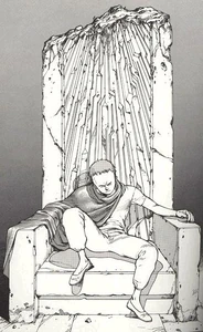 Tetsuo's background is largely the same although unlike the anime after Akira destroys Neo-Tokyo out of a massive emotional trauma he founds the Great Tokyo Empire, a violent isolationist cult who uses psychic shock troops to kill external agents. Also Kaori is introduced as a sex slave brought to the now GTE's Prime Minister Tetsuo by his aide, The Captain. After experiencing a violent hallucination caused by telepathic contact with Akira's mind, Tetsuo decides to visit Lady Miyako for more explanation on the nature of his power; here Miyako gives him a detailed backstory for the government project that created the Espers and tell Tetsuo his substance abuse is restraining his power from fully developing. At the same time the Captain, fed up with Tetsuo's arrogance, takes full control of the Empire army and stages an unsuccessful attack on Miyako's temple, an attack in which Tetsuo opens a mysterious rift in the sky as he lets go of his addiction and unleashes his full power.
