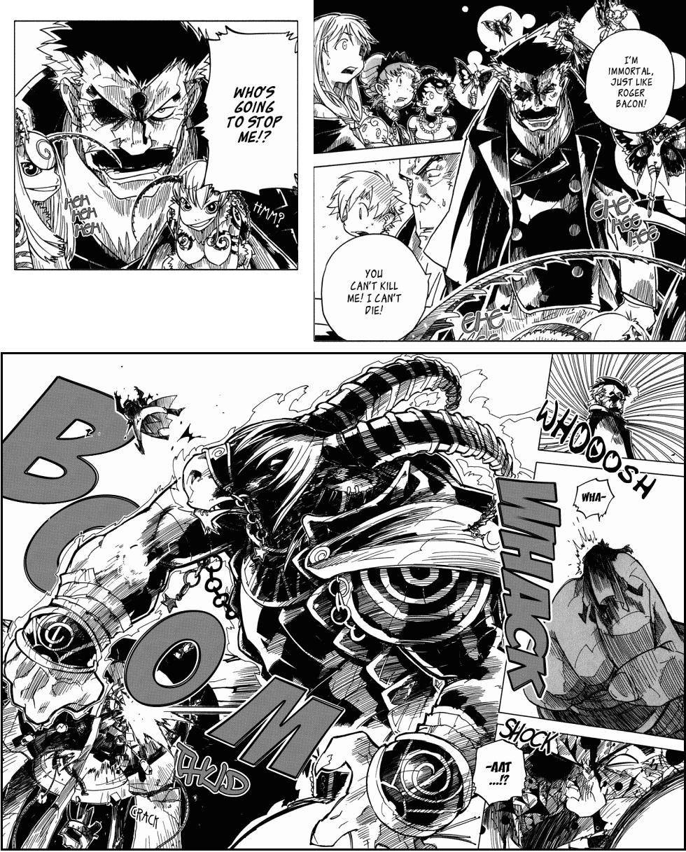 Both Koudelka and Roger refused initially to help, until Leslie and Dogol revealed they had captured Koudelka's friends as hostages. Though they did not have the Émigré Manuscript, Dogol said it would be of little help anyway since Roger had apparently altered the text from the very original, though the nature of his alterations were a mystery to them. Dogol knew that whatever Roger had done he had edited out a small but crucial part of the rites which prevented the ritual from achieving maximum potential. When Roger realized what it was they were asking for he became more adamant than ever about preventing the rites, though he did not stop to say why. At the first sign of Roger's outrage Dogol revealed eldritch powers he had acquired from his brief time going over the Émigré Manuscript with Patrick and used them to restrain Roger. Since the old scribe was not submit to blackmailed, Koudelka felt she had no choice and was willing to hear out Leslie and Dogol's terms. Leslie may not have known where Roger's copy of the Émigré Manuscript was but he knew where the original Manuscript of Exiles was and had paid-off the right people in the Vatican to have it stolen.