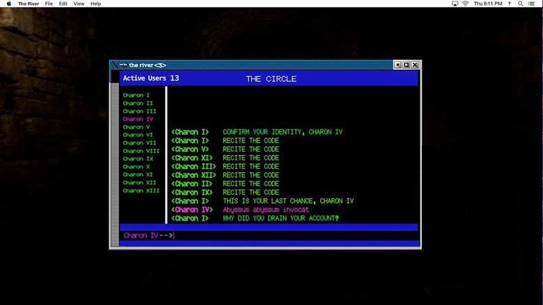 The Circle is a group of violent cybercriminals and hackers who communicate on the Dark Web through a multi-layer protocol called "The River" (which is similar to Tor, but apparently more sophisticated, with more layers). They call themselves Charons, in reference to the mythological figure of the same name, who carries souls to the Hades (the Greek underworld).