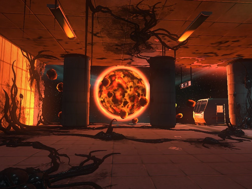 Immediately, the players are attacked on all sides by the Filth (their first encounter with the substance prior to Solomon Island); for a time, they are able to fight their way through the infectees and make their way through the collapsing train station. After being cut off from the other agents, though, players find the subway walls abruptly dissolving away into the depths space, where dead planets and tumbling asteroids orbit the dying bulk of a Red Giant. This is the first of many encounters with rifts into the Dreaming Prison, one that is seen at numerous points throughout the game. As she approaches the rift, Sarah collapses, the vision ends, and the players promptly awake.