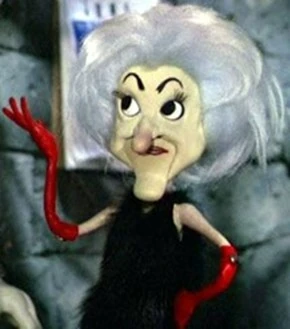 She was voiced by and modeled after the late Phyllis Diller, who also voiced the Mouse Queen in The Nutcracker Prince, Mask Scara in The Powerpuff Girls and Mrs. Claus from Robot Chicken.