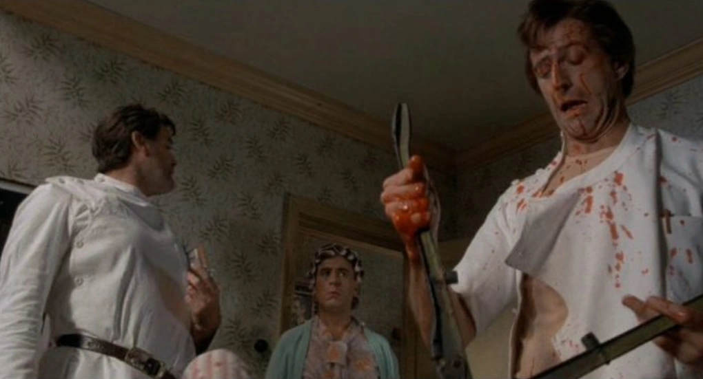 In Part V of the film, titled "Live Organ Transplants", the two visit an organ donor and perform live organ surgery on him with his family walking by without a care. While Eric performs the surgery, his assistant asks his wife if they could also do surgery on her, to which "The Man in Pink" sings a song to her about how little we really matter in the wide universe, to which Mrs. Brown then consents to them killing and mutilating her.