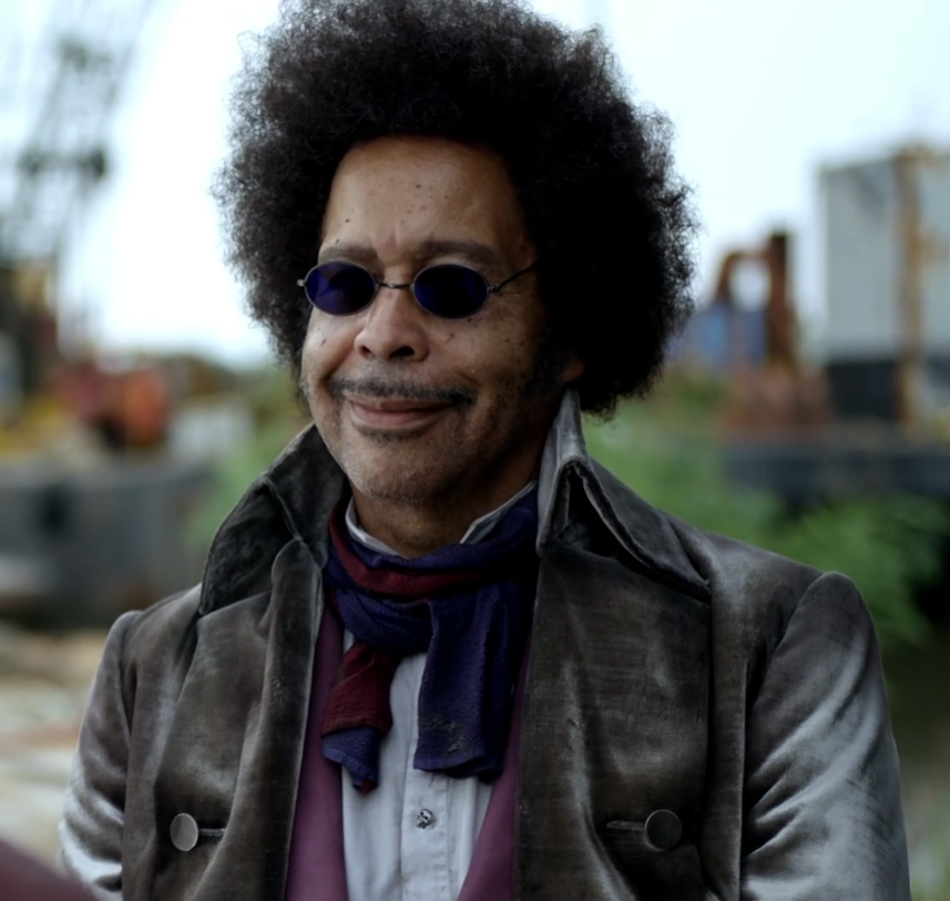 The River King was the most recent person in control of the river trading systems that go in and out of the Badlands and Outlands, having controlled it for several decades. One day, a cargo ship carrying a group of children by the name of Sanzō, Kannin, and Taurin was on its way to the River King, but never arrived. A few days later, it floated out of the fog near the River King's base, with all of the crew and people on board dead, and the children missing. The captain of the ship had an axe in his head, and was on the verge of death. After being saved from dying, he told the River King of the attackers, a cult known as the Black Lotus. One day, At some point in time, Waldo did a favor for the River King during his time as Regent for Baron Quinn. In return, the River King gave Waldo a token which could be given back to the River King for a favor at any time. After this, another cargo ship was destroyed with all of the passengers being killed by a boy named M.K., who has a dark chi ability known as the Gift. After this, the River King puts a bounty out on M.K.'s head. Waldo would eventually give his token to Sunny, who is actually a grown up Sanzō, that had lost his memories of his childhood and time on the boat. Sunny meets with the River King and gives him the token, who comments that Waldo must trust Sunny deeply if he was willing to give up the token. Sunny asks that the River King help him and his companions escape from the Badlands. The River King states that while the token got him an audience, he doesn't owe Sunny anything like Waldo, but they can work something else out. The River King takes Sunny on board the ship M.K. attacked and shows one of the bounty posters to him, saying that if he finds the boy and clips his head, it will serve as payment for Sunny and his companions to get safe passage out of the Badlands, to a place where nobody will ever find them. Unknown to the River King, Sunny is actually M.K.'s mentor, and isn't willing to kill him, instead bringing the River King the severed head of a boy named Bale who looks similar to M.K. as payment. The River King eventually discovers this and desires to get revenge on Sunny.